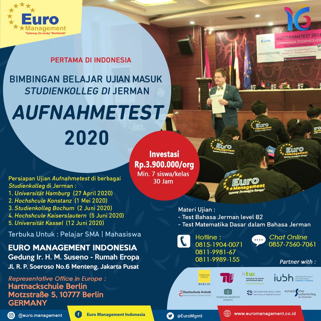 Lebih dari 2000 siswa-siswi Euro Management Indonesia Telah LULUS UJIAN MASUK STUDIENKOLLEG ( Aufnahmeprüfung ) DI JERMAN