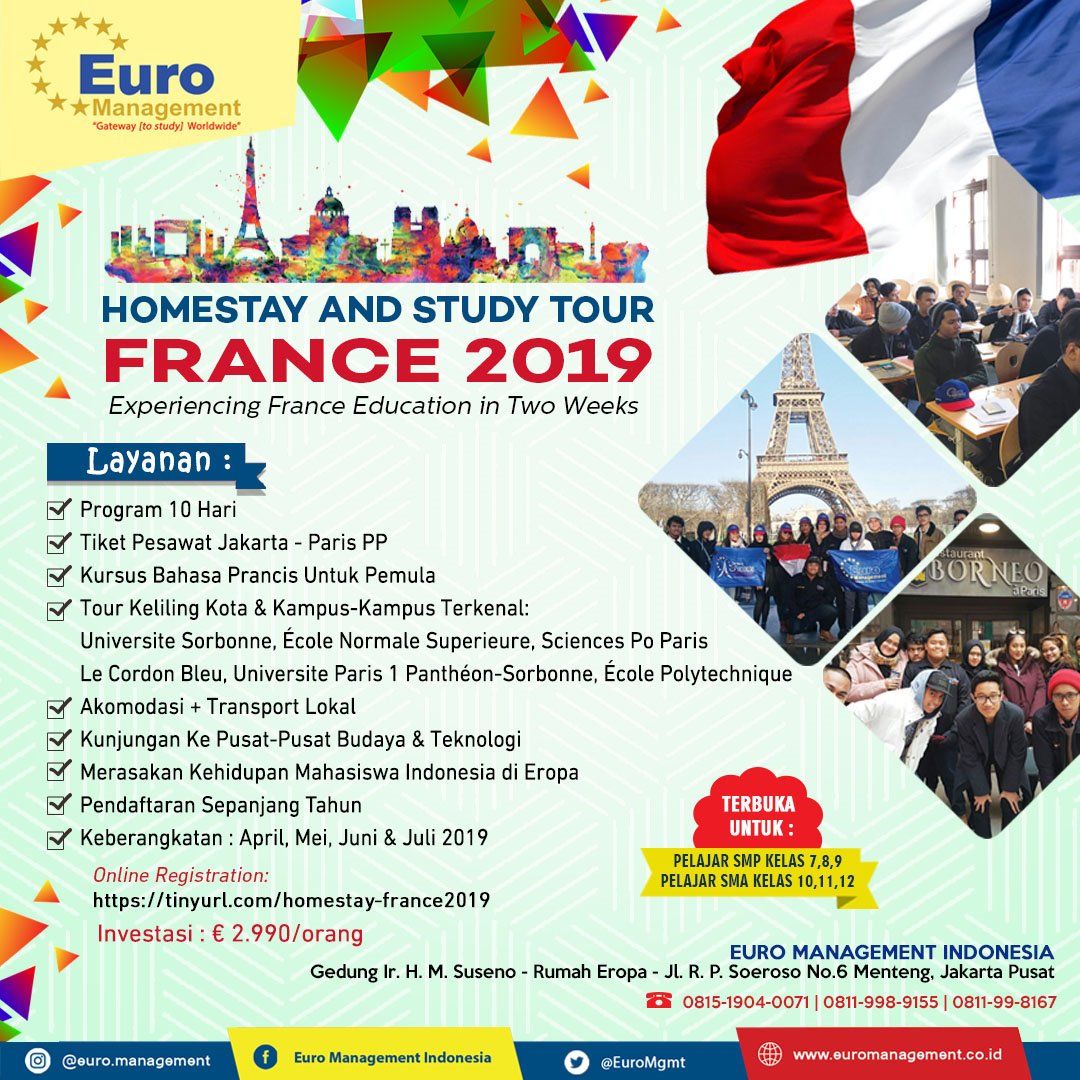 Bagaimana rasanya tinggal dan Kuliah berkualitas di Jantung Eropa? Penasaran? Untuk kamu yang penasaran, kamu bisa mencoba mengikuti Homestay and Study Tour FRANCE 2019