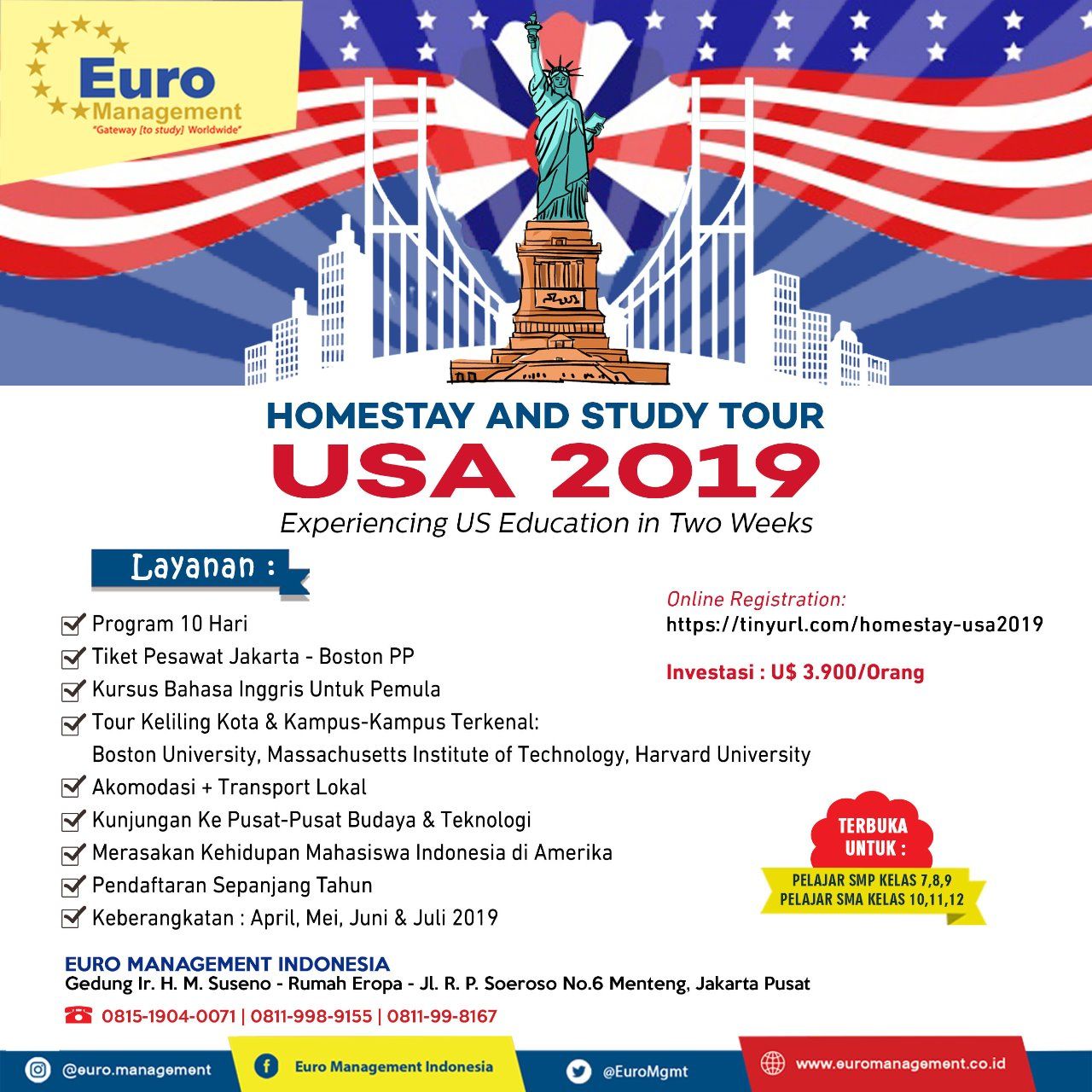 Bagaimana rasanya tinggal dan Kuliah berkualitas di Pusat Pendidikan Internasional? Penasaran? Untuk kamu yang penasaran, kamu bisa mencoba mengikuti Homestay and Study Tour USA 2019