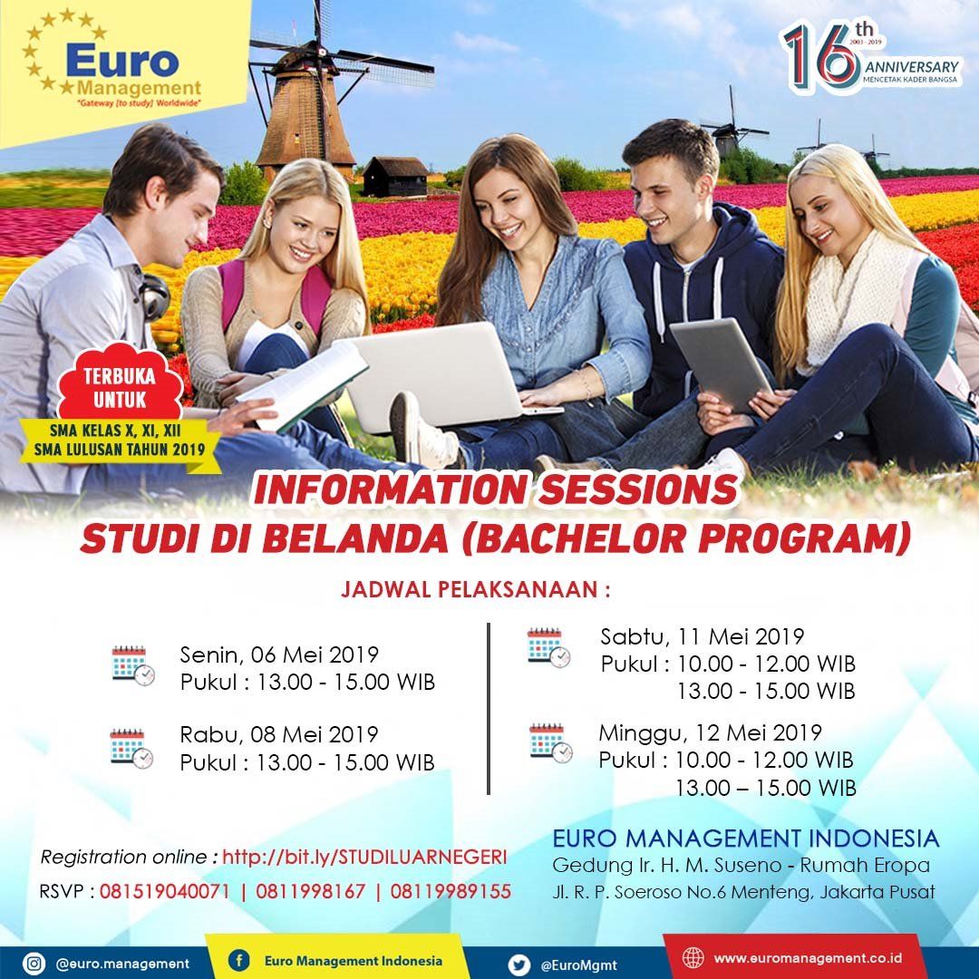 INFORMATION SESSIONS Studi di Belanda (Bachelor Program) 06 - 12 Mei 2019