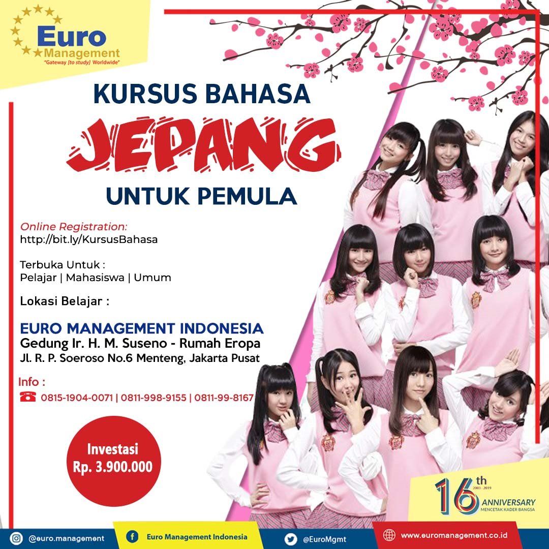 Buat kalian yang mau belajar Bahasa Jepang, tingkat pemula atau lanjutan, Euro Management Indonesia siap membantu kalian...