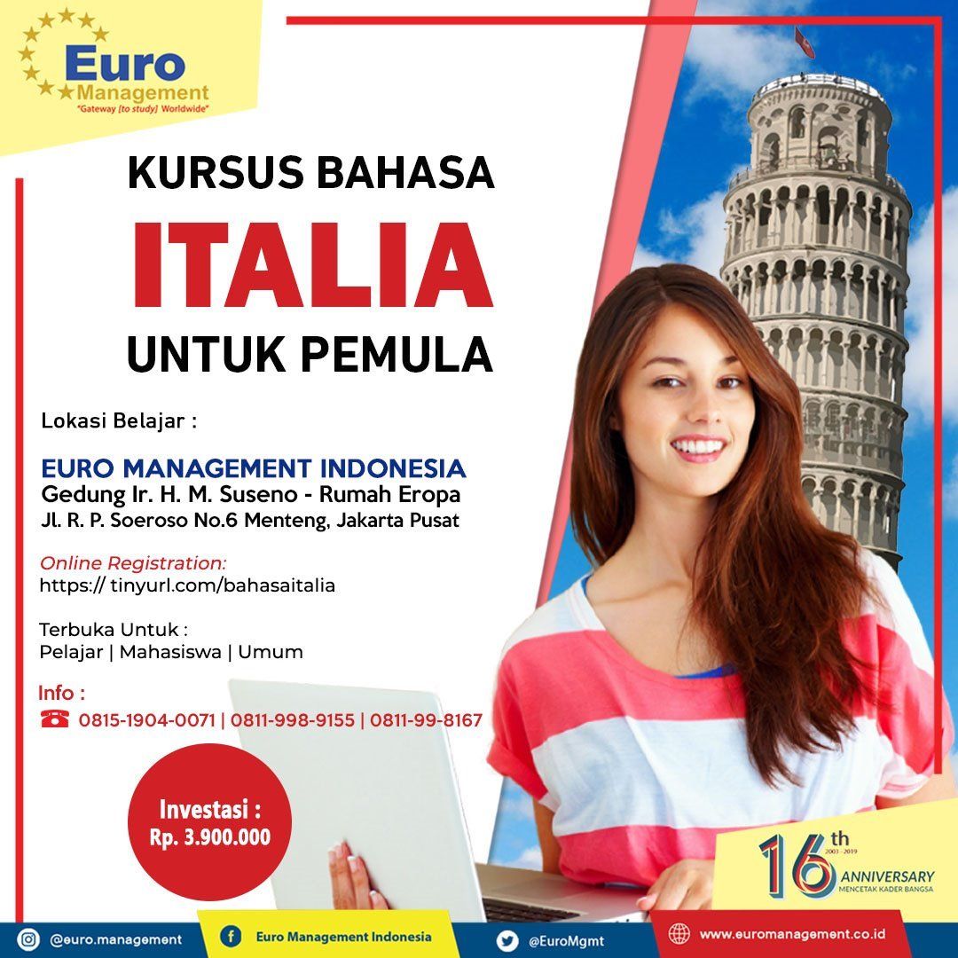 Buat kalian yang mau belajar bahasa Italia, tingkat pemula atau lanjutan, Euro Management Indonesia siap membantu kalianπ