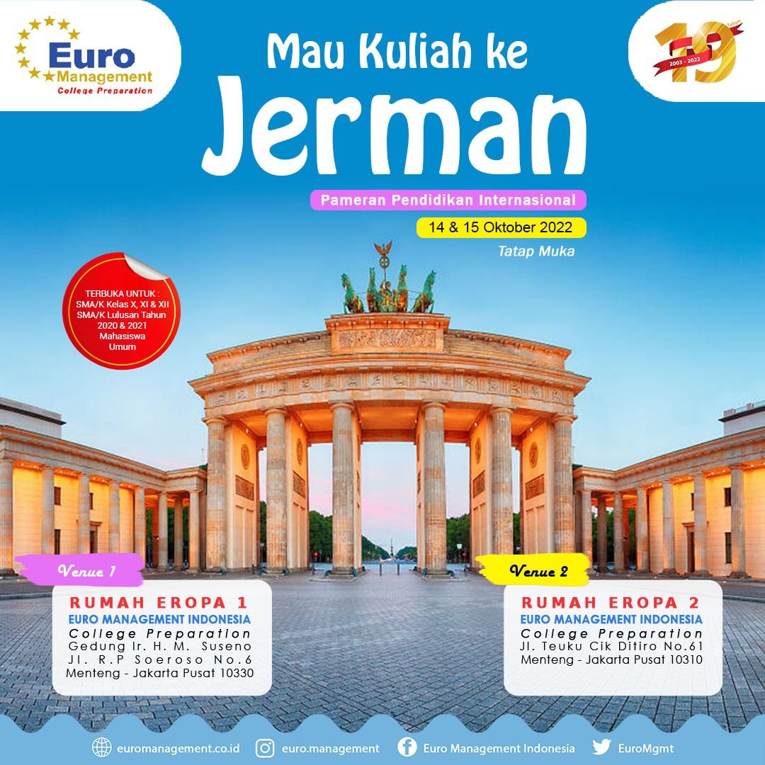 Pameran Pendidikan Internasional 2022 merupakan SHARING SESSION yang bertujuan untuk mengedukasi Kuliah S1 & S2 ke berbagai Negara Maju Dunia seperti di Jerman, Pengenalan Budaya dan Sistem pendidikan di Jerman.