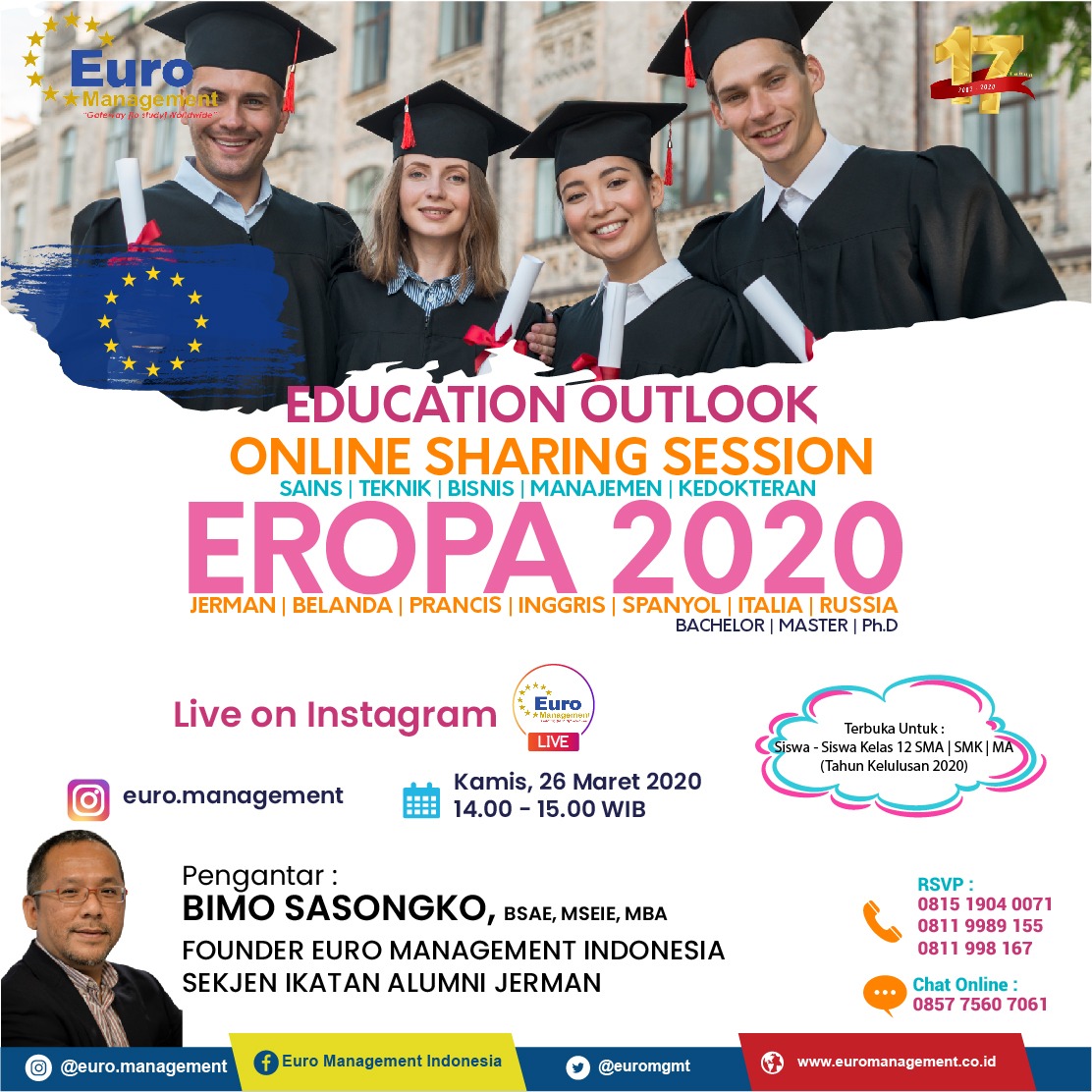 Sharing Sesion LIVE ON INSTAGRAM. The BiggestEvent - Education Outlook Europe 2020 LIVE STREAMING IG Segera Bergabung dibawah ini dengan Follow IG Kami @euro.management