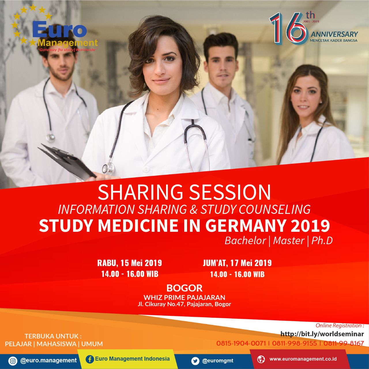 Sharing Sessions @Studi Kedokteran & Spesialis di Jerman, 15 & 17 Mei 2019