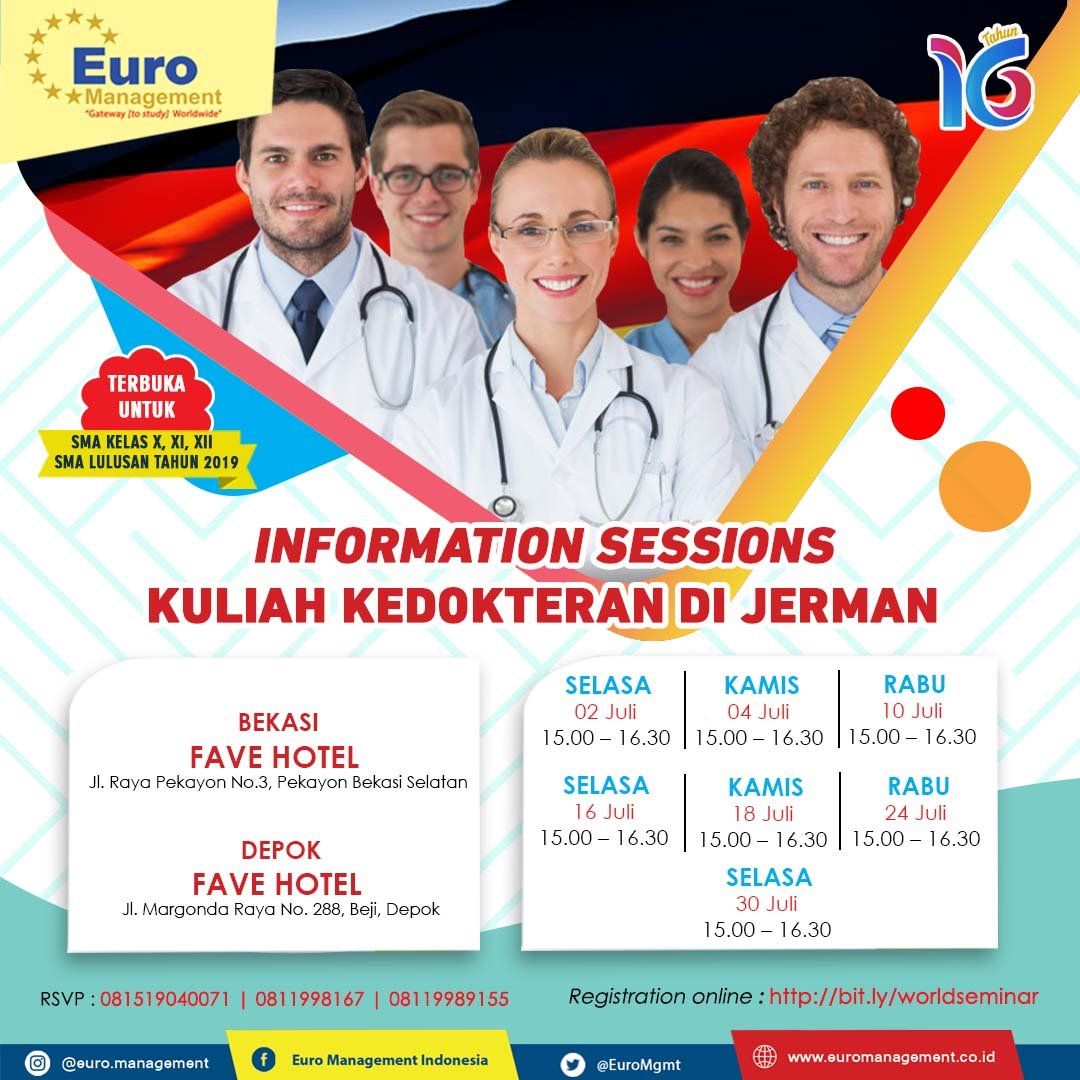 SPECIAL INFO SESSION KULIAH KEDOKTERAN DI JERMAN, 10 s/d 30 Juli 2019