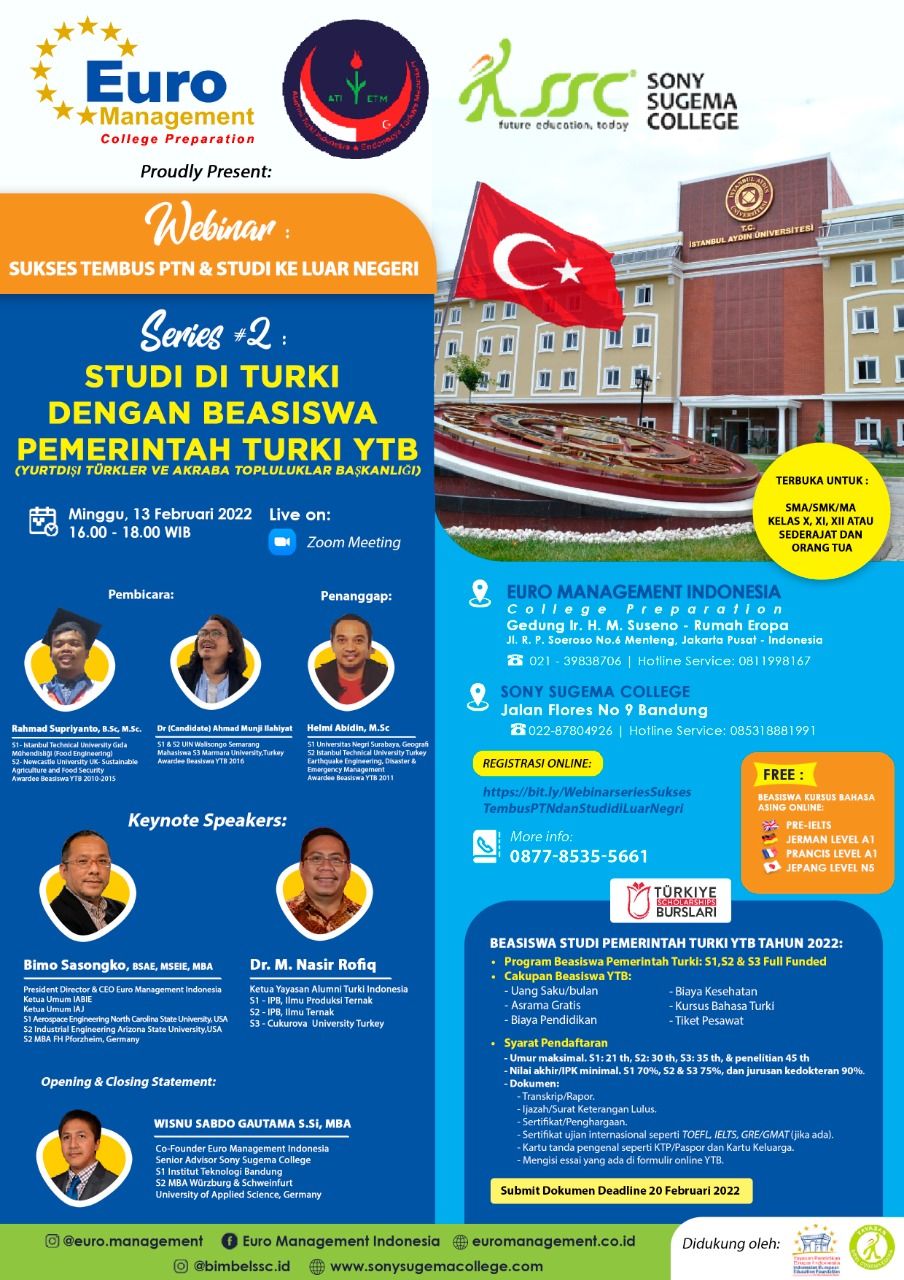 Informasi Beasiswa, Wawasan, Tip & Trik Studi dan hidup sebagai mahasiswa di Turki & Di negara maju dunia lainnya didapatkan di Webinar kali ini. Jangan Dilewatkan!!!