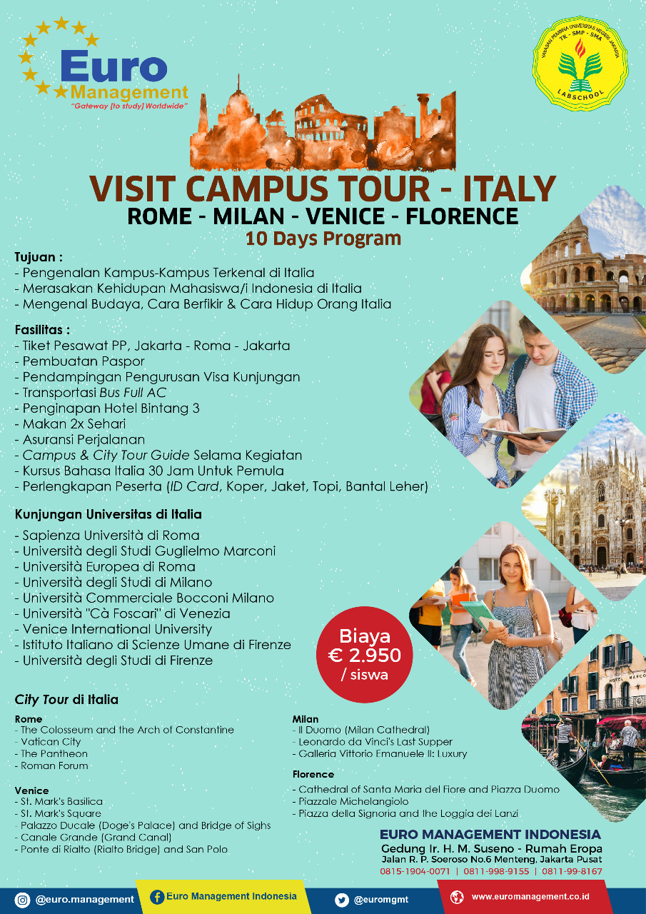 Dengan mengikuti Visit Campus Tour – Italy kita bisa banyak belajar. Mulai dari bahasanya, kulturnya, karakteristik orang-orang di negara tersebut dan travelling.