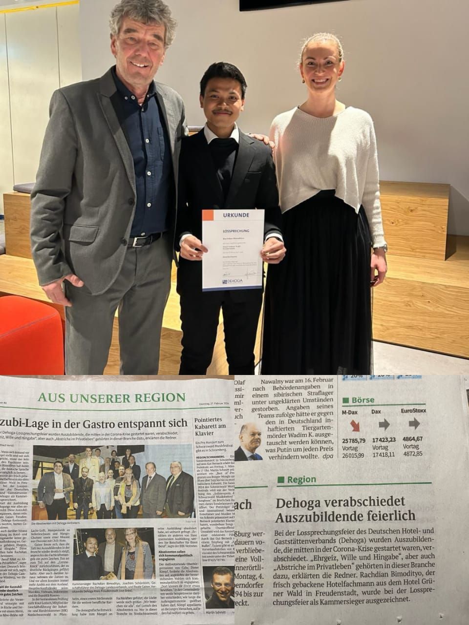 sebagai Lulusan Terbaik _Hotelfachmann_ di Freudenstadt, Lauterbad. Hotel Grüner Wald, Jerman