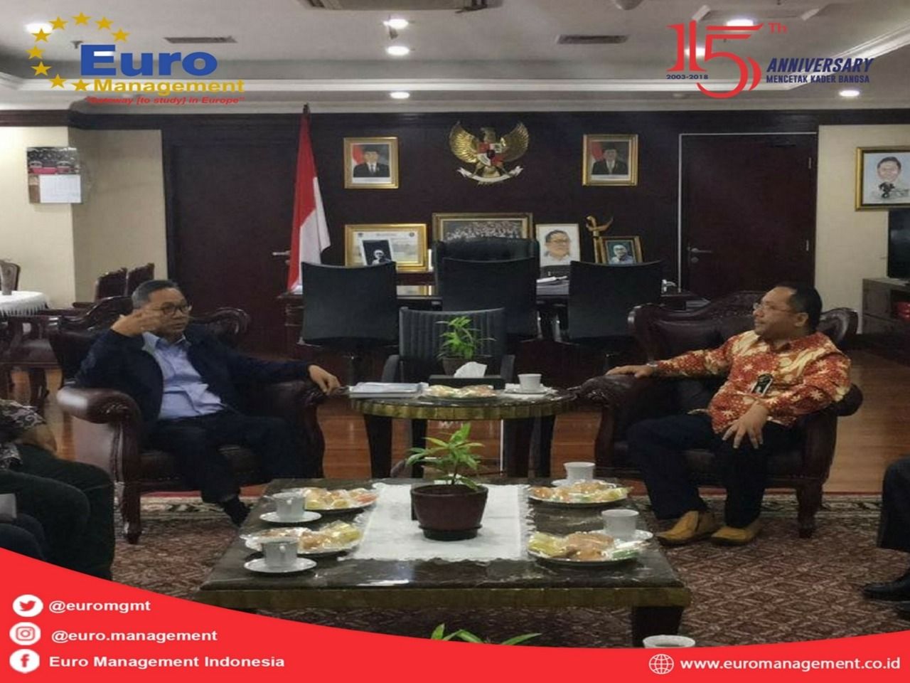 Presiden Direktur & CEO Euro Management Indonesia, Bapak Bimo Sasongko, BSAE, MSEIE , MBA . Bertemu langsung dengan ketua MPR RI Zulkifli Hasan, S.E.,M.M pada kesempatan tersebut Bimo Sasongko yang merepukan salah satu penerima Beasiswa Program Habibie menyampaikan bahwa saat ini di butuhkan percepatan untuk meningkatkan kualitas Sumber Daya Manusia Indonesia yang unggul serta memiliki kopetensi untuk bersaing di era globalisasi .