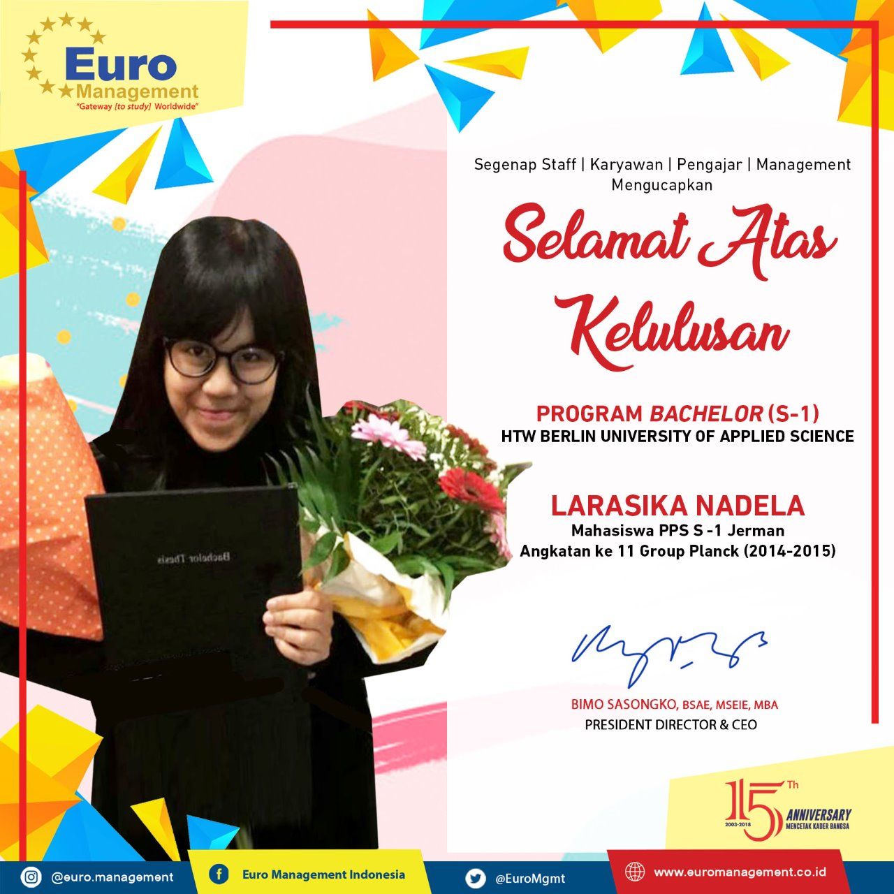 Euro Management Indonesia mengucapkan Selamat dan Sukses atas Larasika Nadela