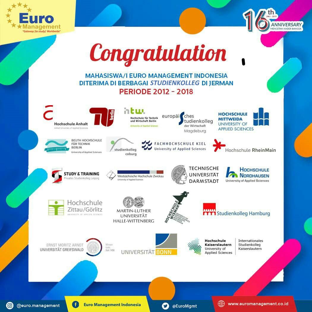 Mahasiswa/i Euro Management Indonesia Diterima di Berbagai Studienkolleg di Jerman, Periode 2012 -2018