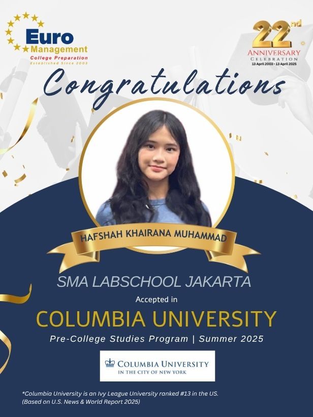Hafshah Khairana Muhammad, siswi SMA Labschool Jakarta, telah DITERIMA di COLUMBIA UNIVERSITY, Pre-college Studies Program | Summer 2025 πΊπΈπ