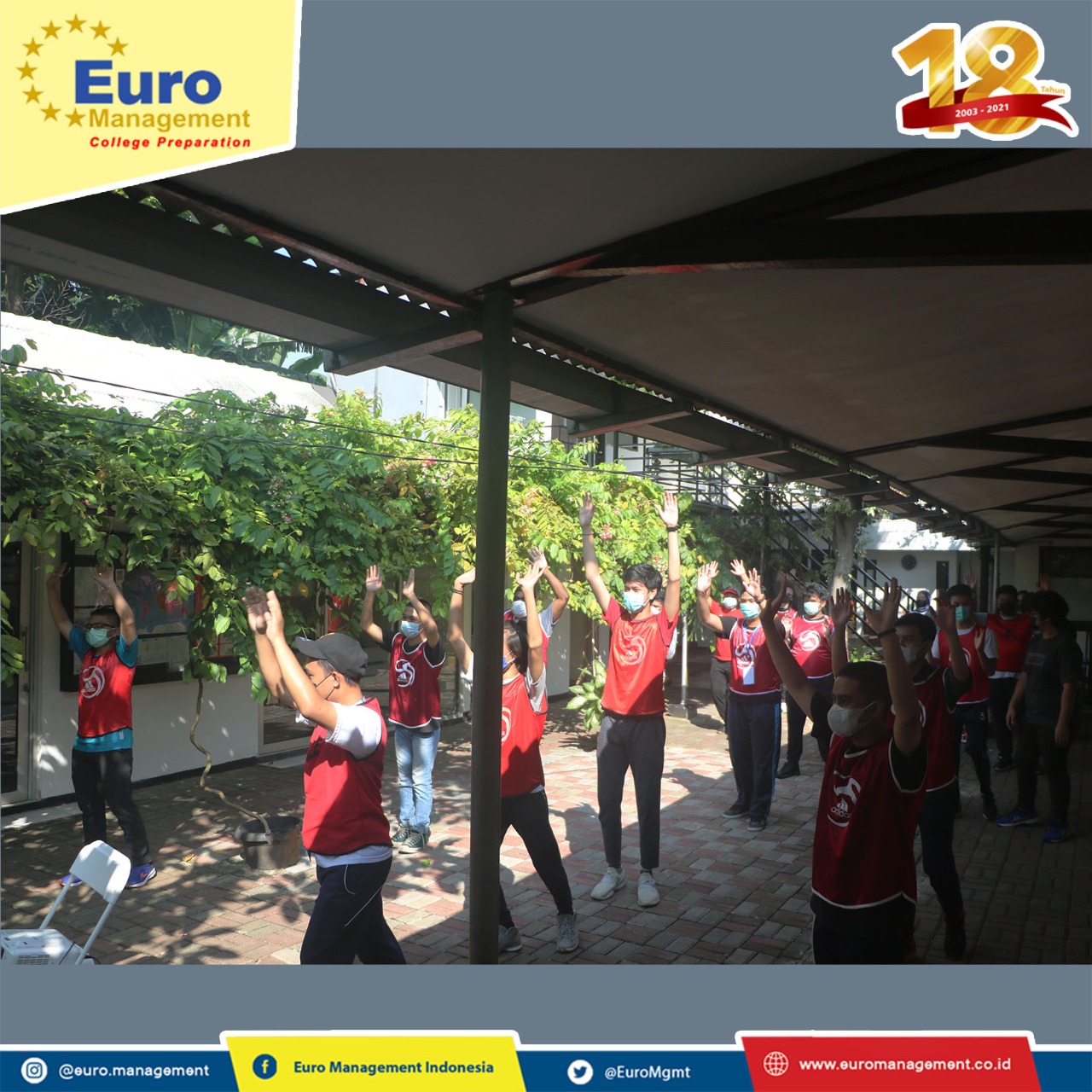 Jumat, 28 Mei 2021, Euro Management Indonesia mengadakan olah raga pagi bersama siswa yang dilaksanakan di kantor