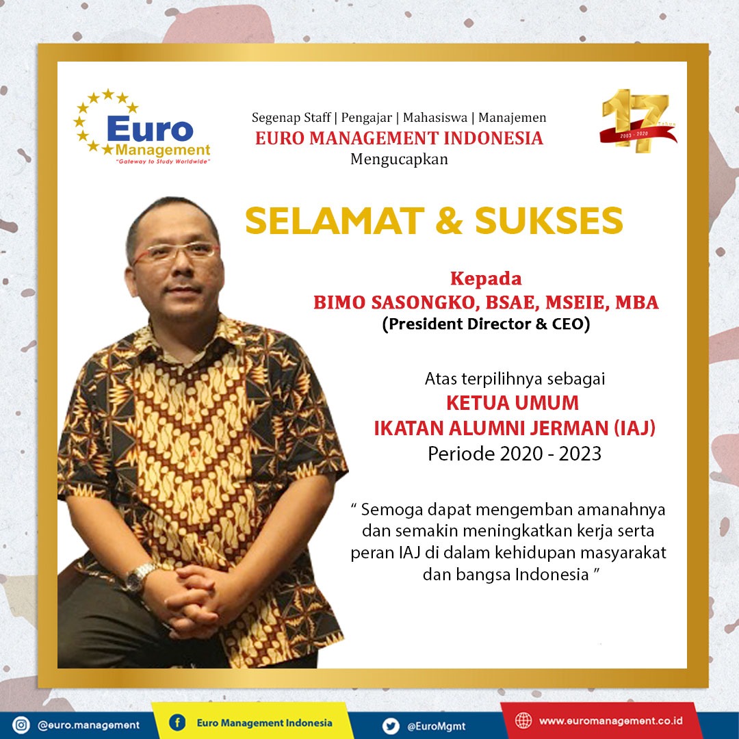 SELAMAT & SUKSES Kepada Bimo Sasongko, BSAE, MSEIE, MBA President Director & CEO Atas Terpilihnya Sebagai Ketua Umum Ikatan Alumni Jerman (IAJ) Periode 2020-2023