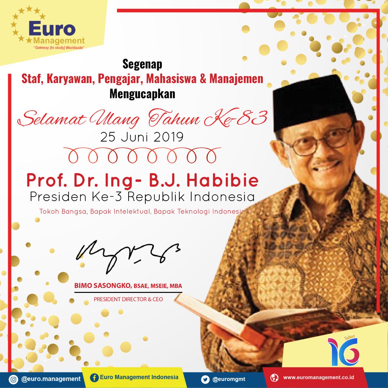SELAMAT ULANG TAHUN KE-83 PRESIDEN KE-3 REPUBLIK INDONESIA Prof Dr. Ing- BJ Habibie, 25 Juni 2019