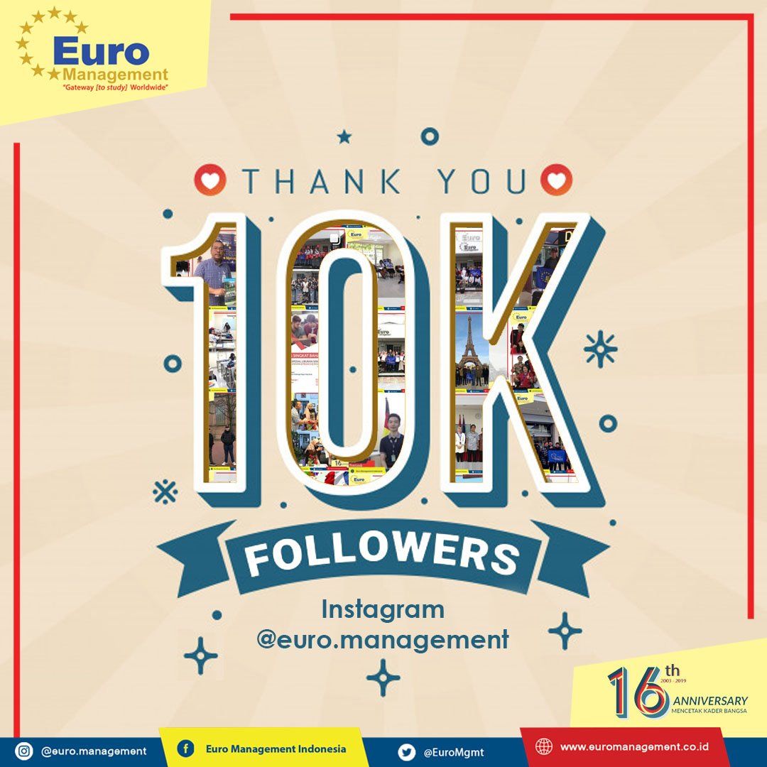 sangat bersyukur untuk semua pengikut tetap ikuti akun sosial media kami untuk tetap mendapatkan informasi - informasi menarik juga kegiatan dari siswa/i Euro Management Indonesia.