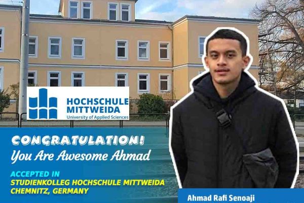 Ahmad Rafi Senoaji Alumni SMA Al-Izhar Jakarta | Angkatan 2021 ACCEPTED IN Studienkolleg Hochschule Mittweida, Chemnitz Jurusan Teknik Bachelor Program | Intake year 2021