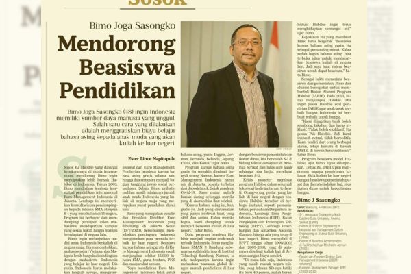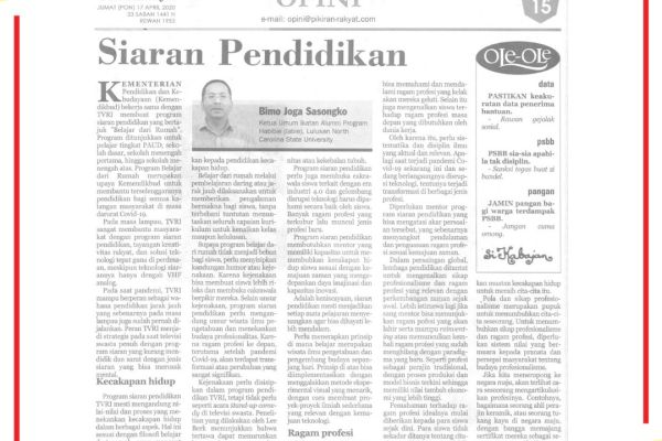 SIARAN PENDIDIKAN PIKIRAN RAKYAT Jumat, 17 April 2020 BIMO SASONGKO, BSAE,MSEIE,MBA, Faunder Euro Management Indonesia I Ketua Umum Ikatan Alumni Program Habibie-IABIE I Sekjen IAJ - Ikatan Alumni Jerman