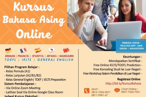 KURSUS BAHASA ASING ONLINE Euro Management Indonesia menyelenggarakan Kursus Bahasa Jerman, Prancis, General English, TOEFL dan IELTS Preparation secara Online.