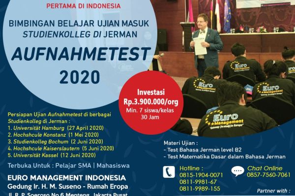 Pendampingan mahasiswa-mahasiswi Euro Management Indonesia PPS (Program Persiapan Studi ) S1 Ke Studienkolleg Technische Universität Berlin, Jerman Angkatan 16 Tahun 2019-2020