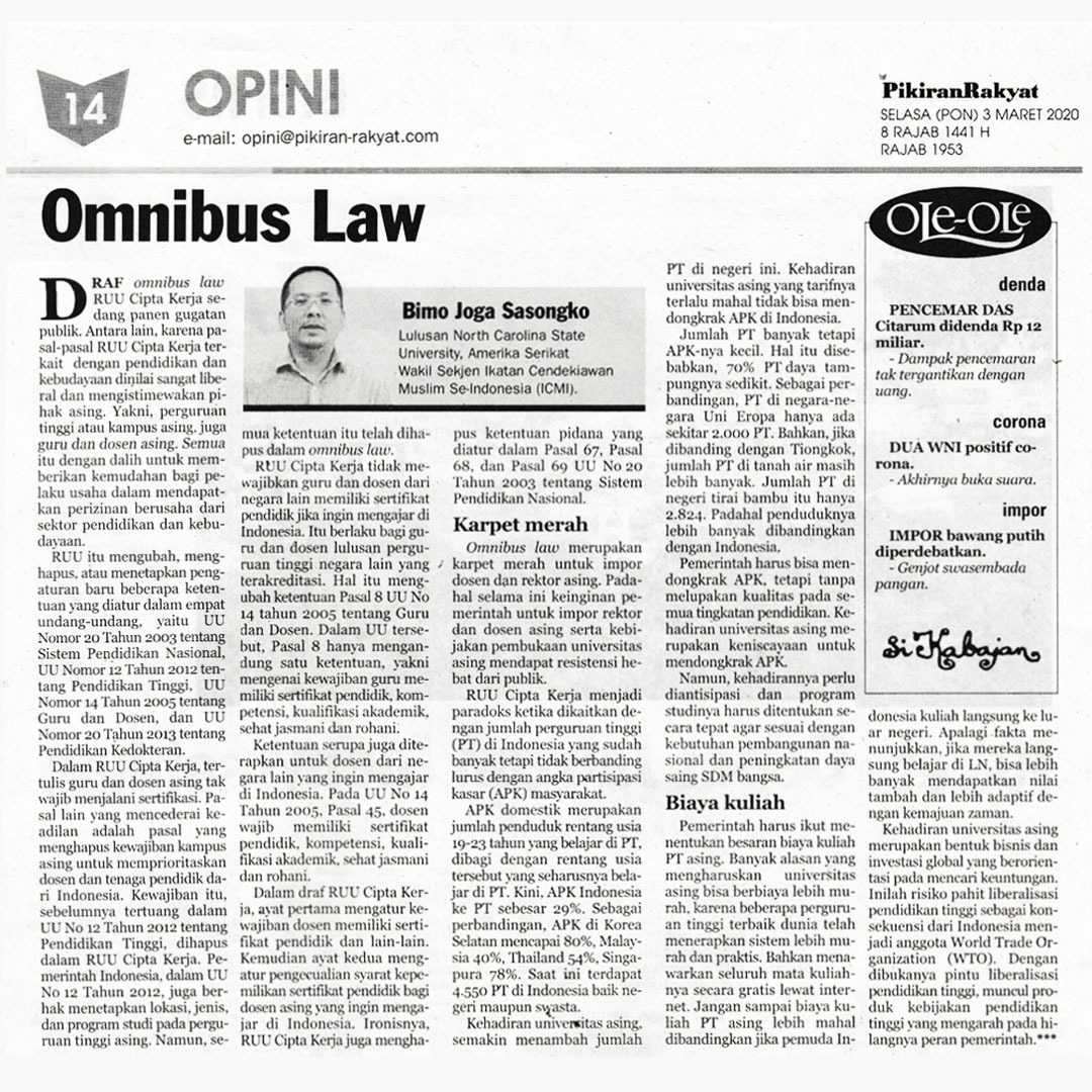 OMNIBUS LAW PIKIRAN RAKYAT Selasa, 03 Maret 2020 Hal 14 Kolom Opini