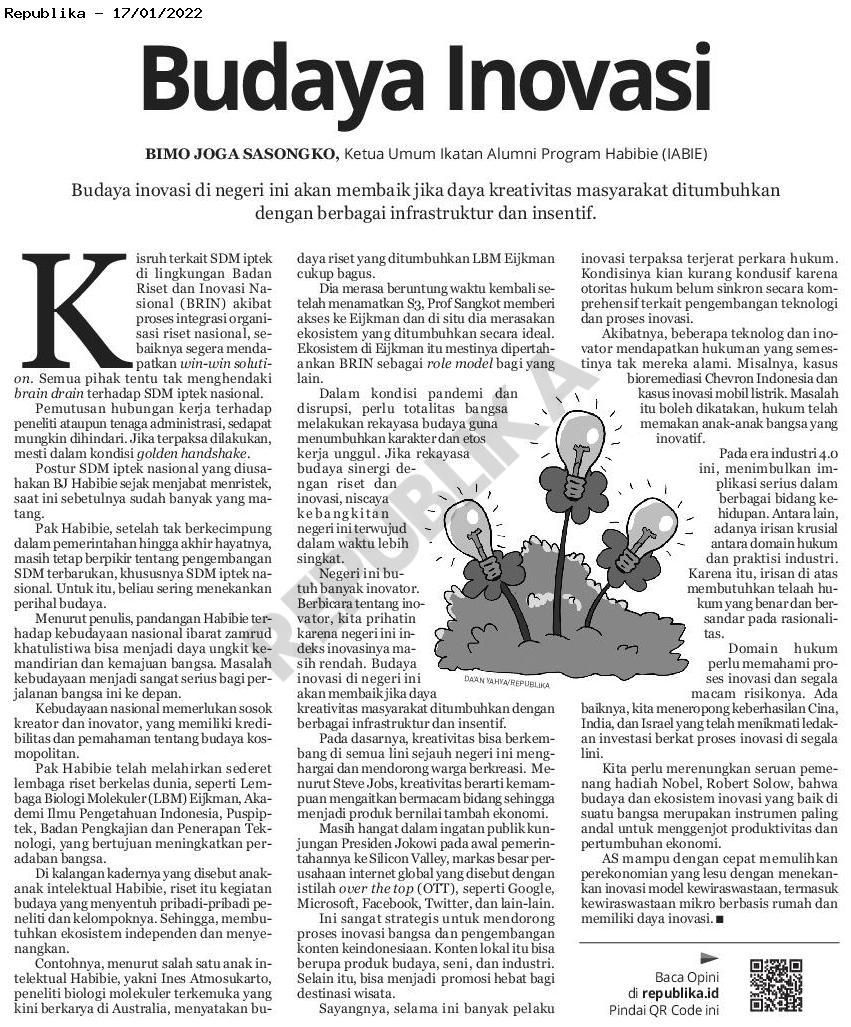 BUDAYA INOVASI Koran Republika Senin, 17 Januari 2022